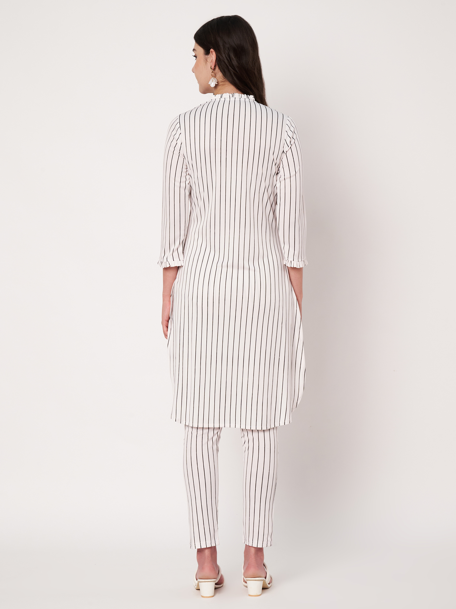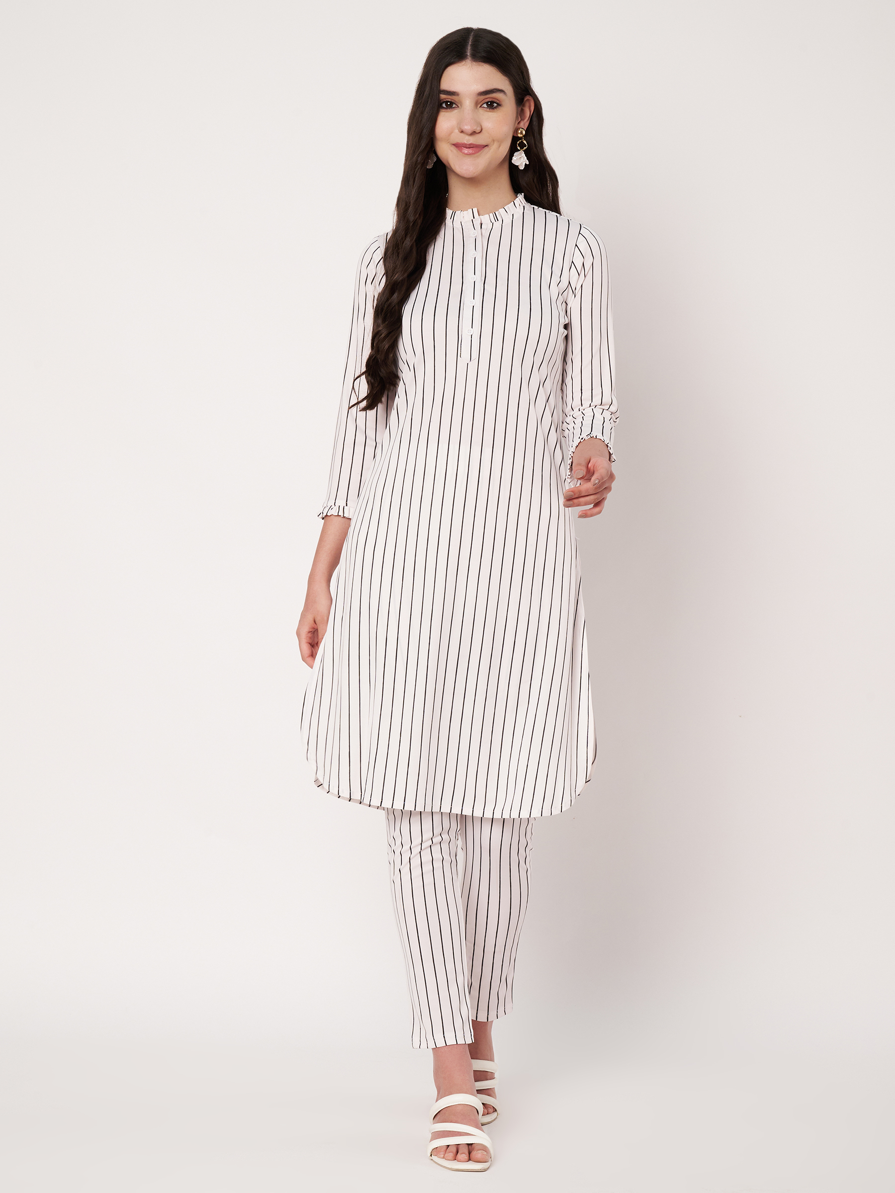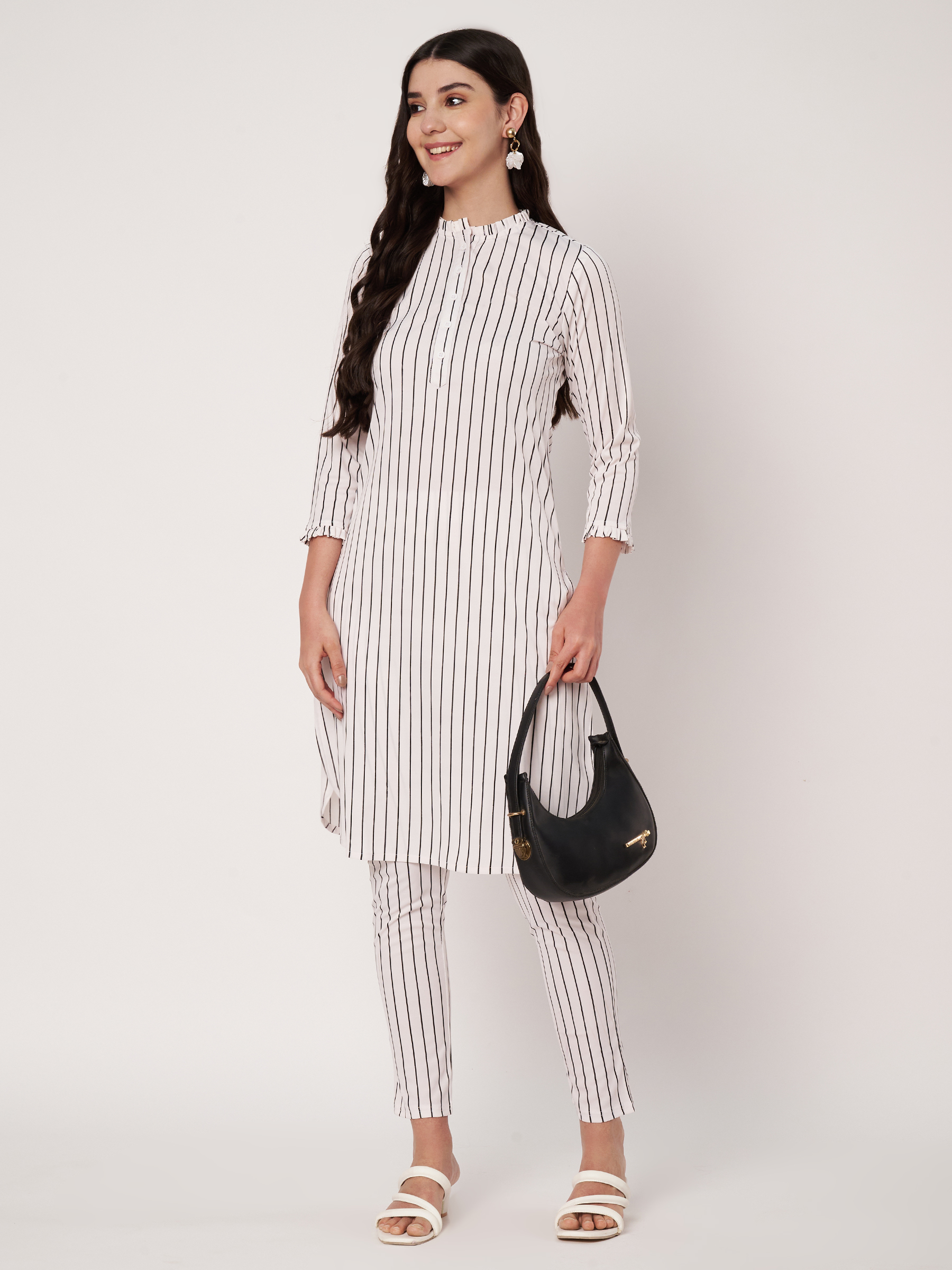 Other Details –Â Pattern: Vertical Stripes, Fit Type: Regular Fit, Neck Type: Round Neck, Sleeve Type: 3/4th Sleeves, Waistband: Elasticated, Occasion: Office Wear / Daily Wear / Casual Wear, Care Instructions: Hand Wash / Machine Wash, Do Not Bleach