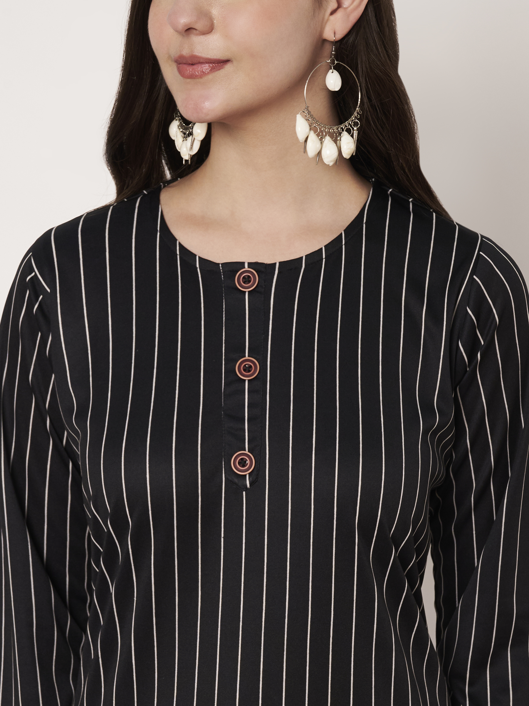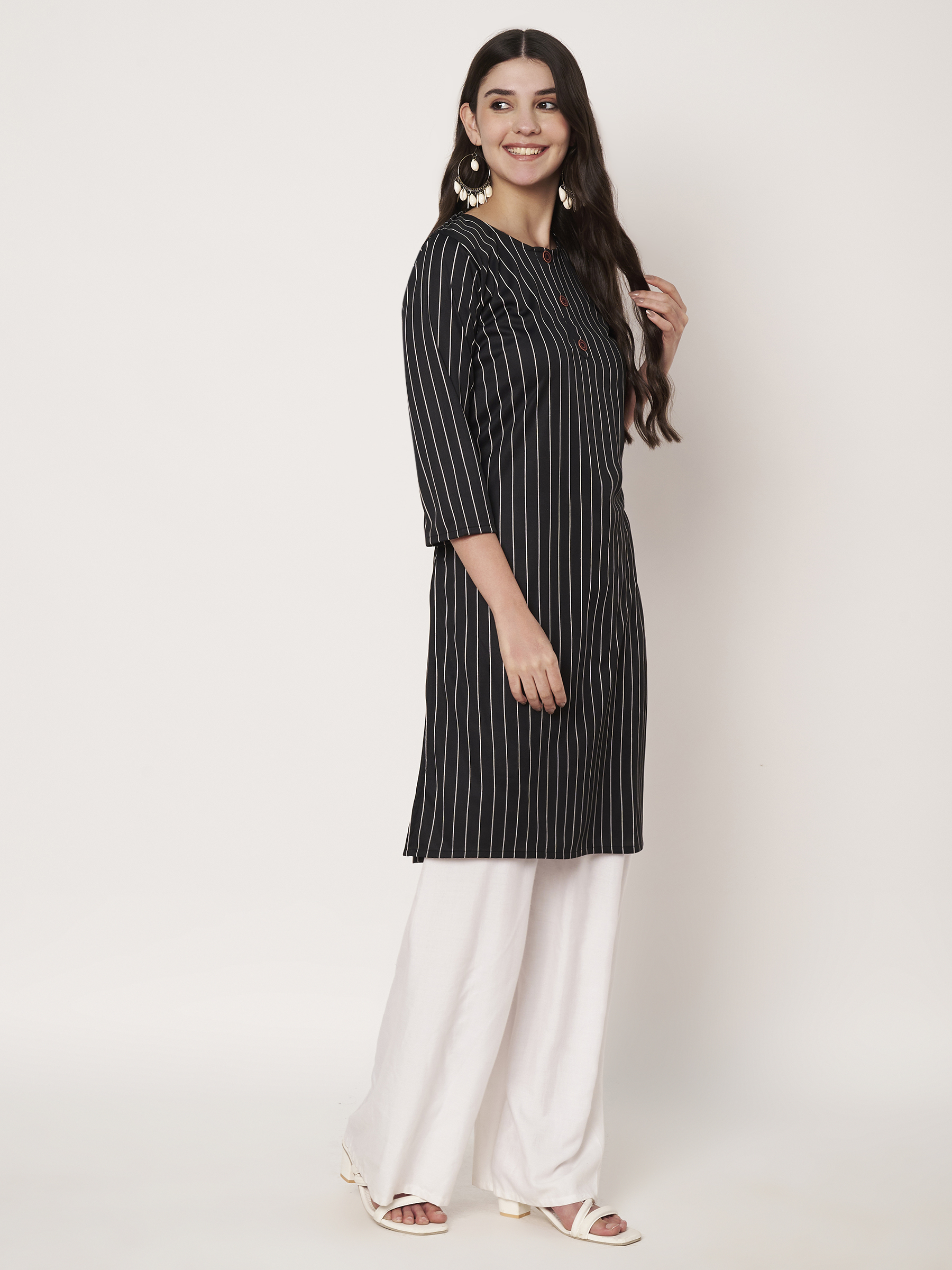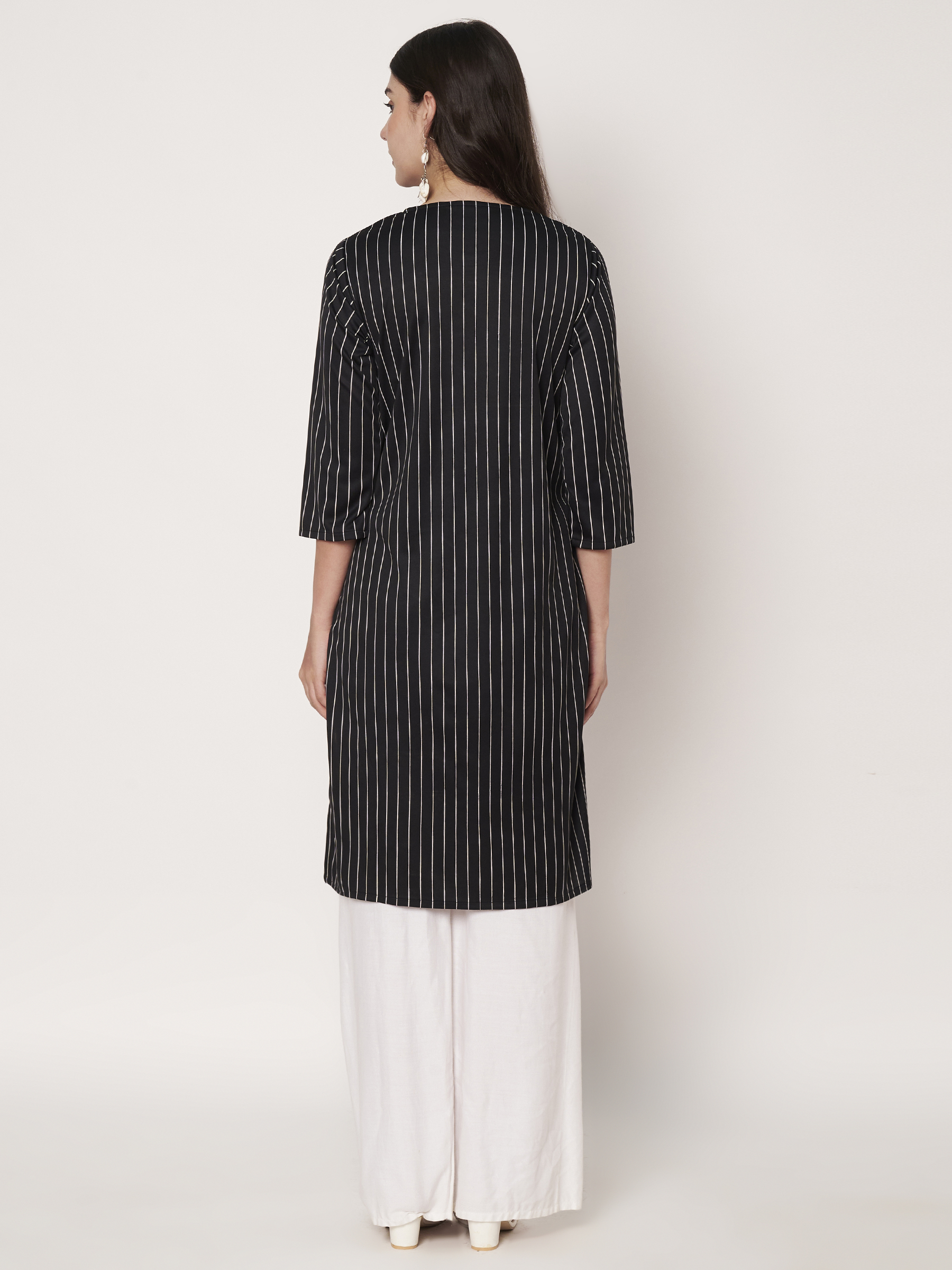 Model Name – Fashoraa-Black & White Striped Cotton Straight Kurti for Women