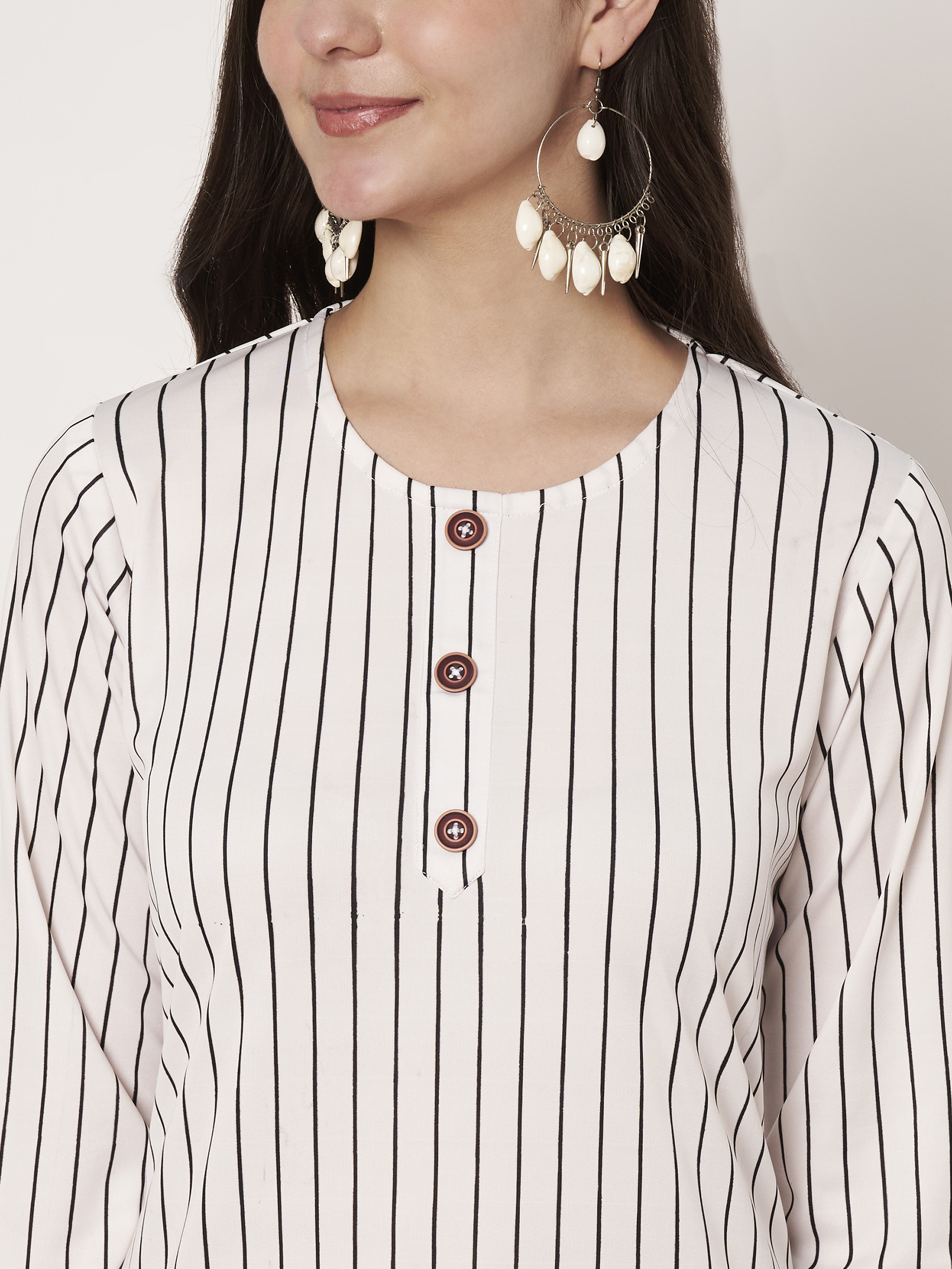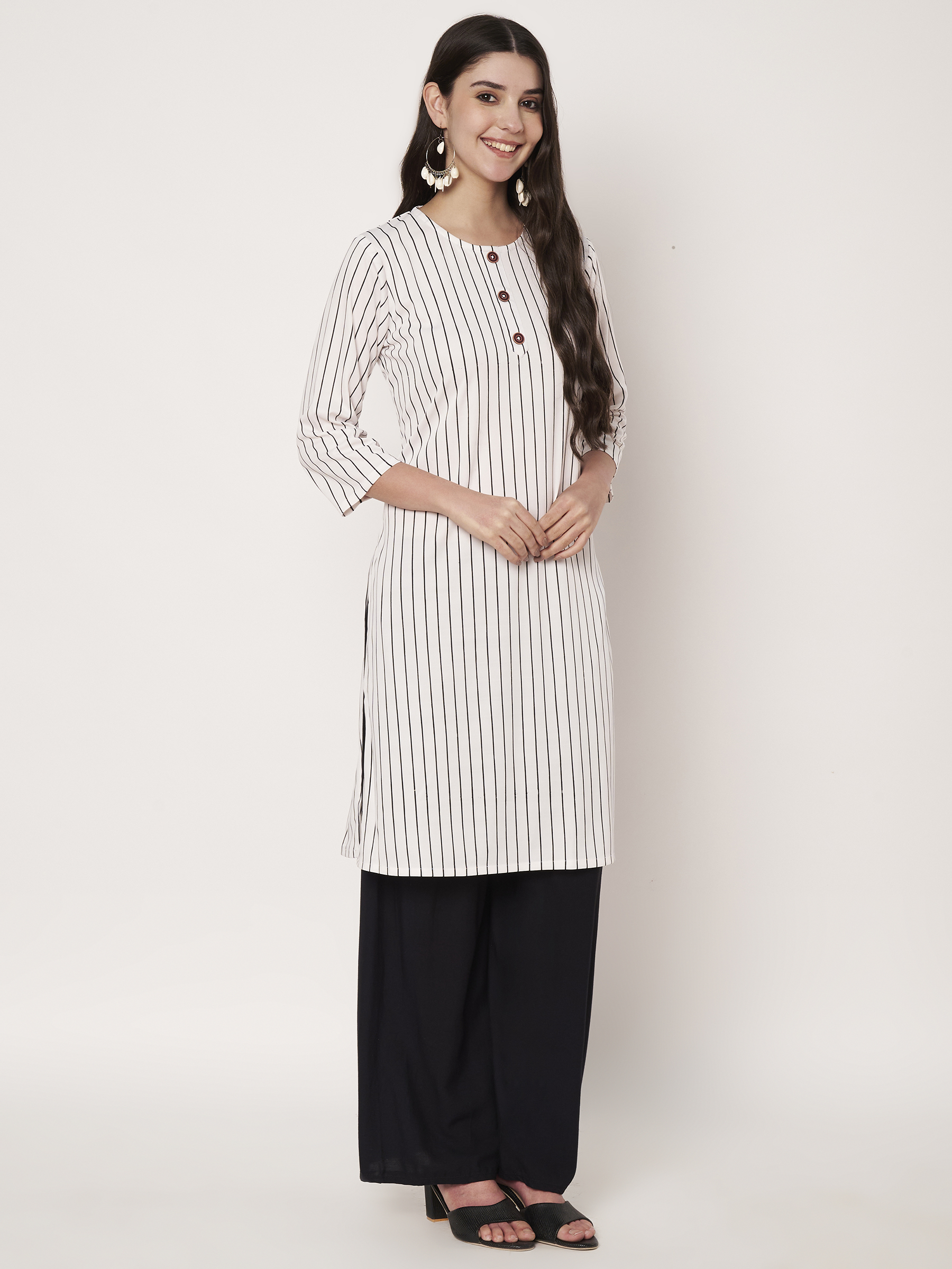Model Name – Fashoraa-Black & White Striped Cotton Straight Kurti for Women